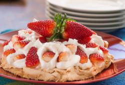Basicamente merengue com morangos, só que utilizando o merengue italiano também, um tipo de marshmallow mais delicado. O interessante deste doce é que parece muito doce, mas não é, doçura na medida certa!