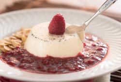 Clássica sobremesa italiana, fica entre o Pudim e o Flan. Geralmente é servida com uma calda de frutas, e aproveitando a estação fiz uma calda de framboesas.