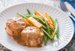 Crosta deliciosa envolvendo a maciez do salmão com tempero inusitado.