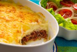 Escondidinho é uma febre nacional, todo mundo gosta. O preferido daqui de casa é o de carne seca com purê de batatas.