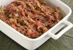 Prato típico de tropeiros, unindo a farinha de mandioca do índio com a carne seca aprendida a ser preparada com os portugueses.