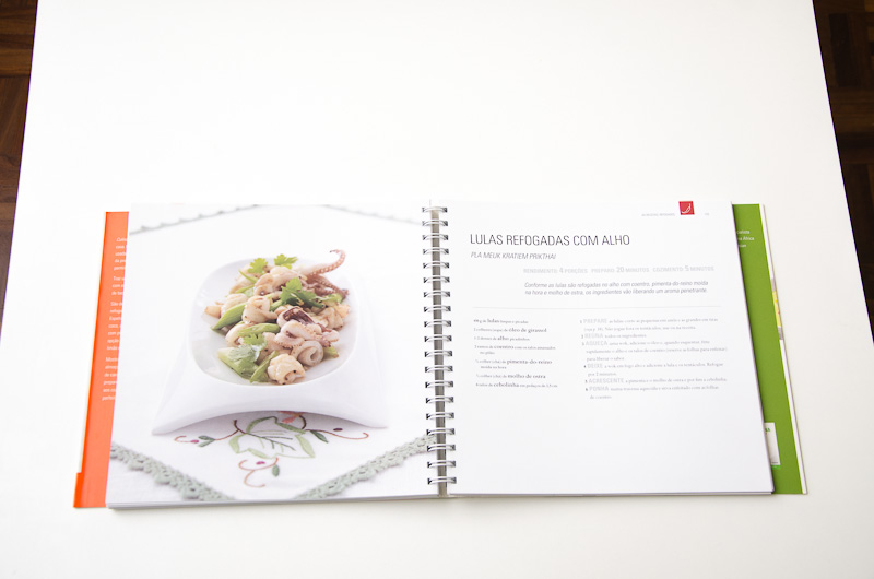Todo ilustrado, contendo um índice explicativo de temperos e molhos usuais na comida da Tailândia.